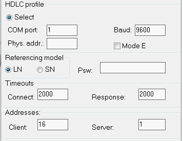 Here is an example of the HDLC-layer parameters as set in the EZReader application: